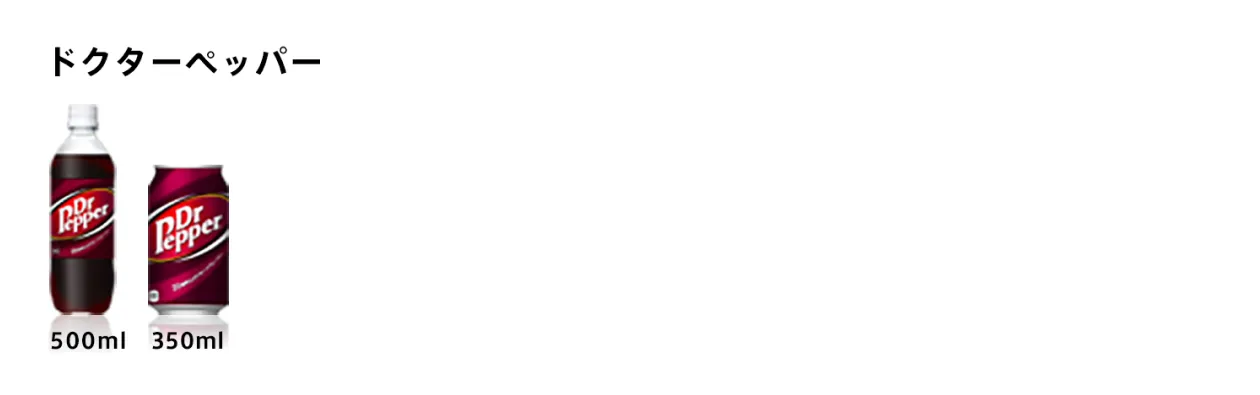 パッケージに関しても少し言及すると、2020年ごろから従来よく見かけていた350mlの缶だけでなく、500mlのペットボトルや500mlの缶でも見かけるようになったよ。飲料オタクとしては「缶一択」だね。なぜなら冷蔵庫でキンキンに冷やした缶のドクターペッパーはこの世の全ての快楽を与える力があるから。